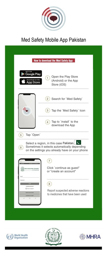 The launch of the Med Safety App in Pakistan took place on 2 November 2020 during the Med Safety Week Campaign.